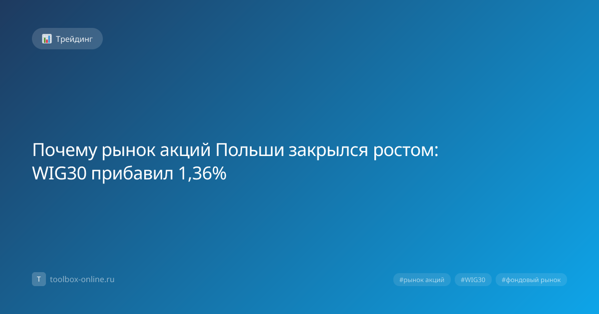 Рынок акций Польши закрылся ростом: индекс WIG30 прибавил 1,36% к закрытию 10 апреля 2026 года, что свидетельствует о повышенном спросе на польские акции в конце торговой сессии. Такой рост подтверждает устойчивость польского фондового рынка и открывает новые возможности для инвестиций. Трейдеры отмечают, что увеличение объёма сделок превысило 150 млн злотых, а в рублях это около 30 млн ₽. Рост WIG30 на 1,36% объясняется сочетанием нескольких факторов: укрепление злотого, позитивные корпоративные отчёты и рост спроса со стороны иностранных инвесторов. В частности, компании из сектора технологий продемонстрировали рост прибыли на 5 % годовых, а банковский сектор привлек новые капиталы. Инвесторы выбирают польский рынок из‑за стабильного роста ВВП (+4,2 % в 2025 году) и прозрачных регуляций, что делает его безопасным местом для вложений. Кроме того, средняя доходность акций WIG30 составляет около 8 % годовых, что превышает доходность государственных облигаций России (5 %). Если вы планир