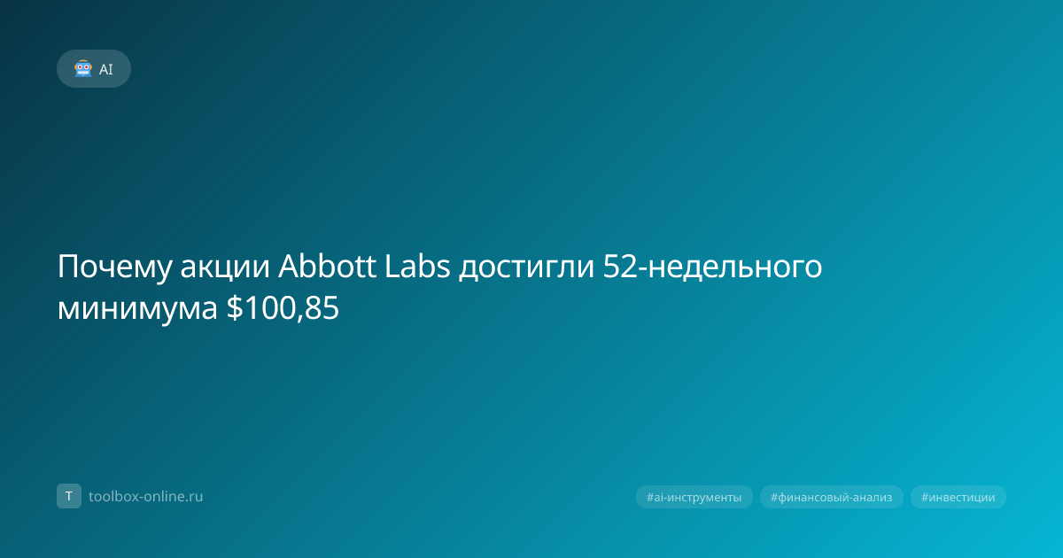 Акции Abbott Laboratories достигли 52‑недельного минимума на уровне $100,85 — это результат падения доходов в Q2 2026 и ухудшения рыночных ожиданий. Текущая цена эквивалентна примерно 9 383 рублям, что делает акции привлекательными для спекулянтов, но рискованными для консервативных инвесторов. Цена упала после публикации отчёта, где выручка сократилась на 12 % до $2,3 млрд в сравнении с аналогичным периодом 2025 года. Инвесторы также отреагировали на снижение маржи до 18 % и рост расходов на R&D на 8 %. Инвесторы беспокоятся о том, что снижение доходов может продолжиться из‑за усиления конкуренции в секторе биотехнологий и задержек в выпуске новых препаратов. Если вы уже держите акции, рекомендуется оценить риск‑профиль и рассмотреть стратегии хеджирования. Для быстрого анализа используйте онлайн‑сервисы, которые автоматически собирают финансовые данные и строят прогнозы. На toolbox-online.ru вы найдёте набор бесплатных онлайн‑инструментов, которые помогут быстро оценить стоимость и р