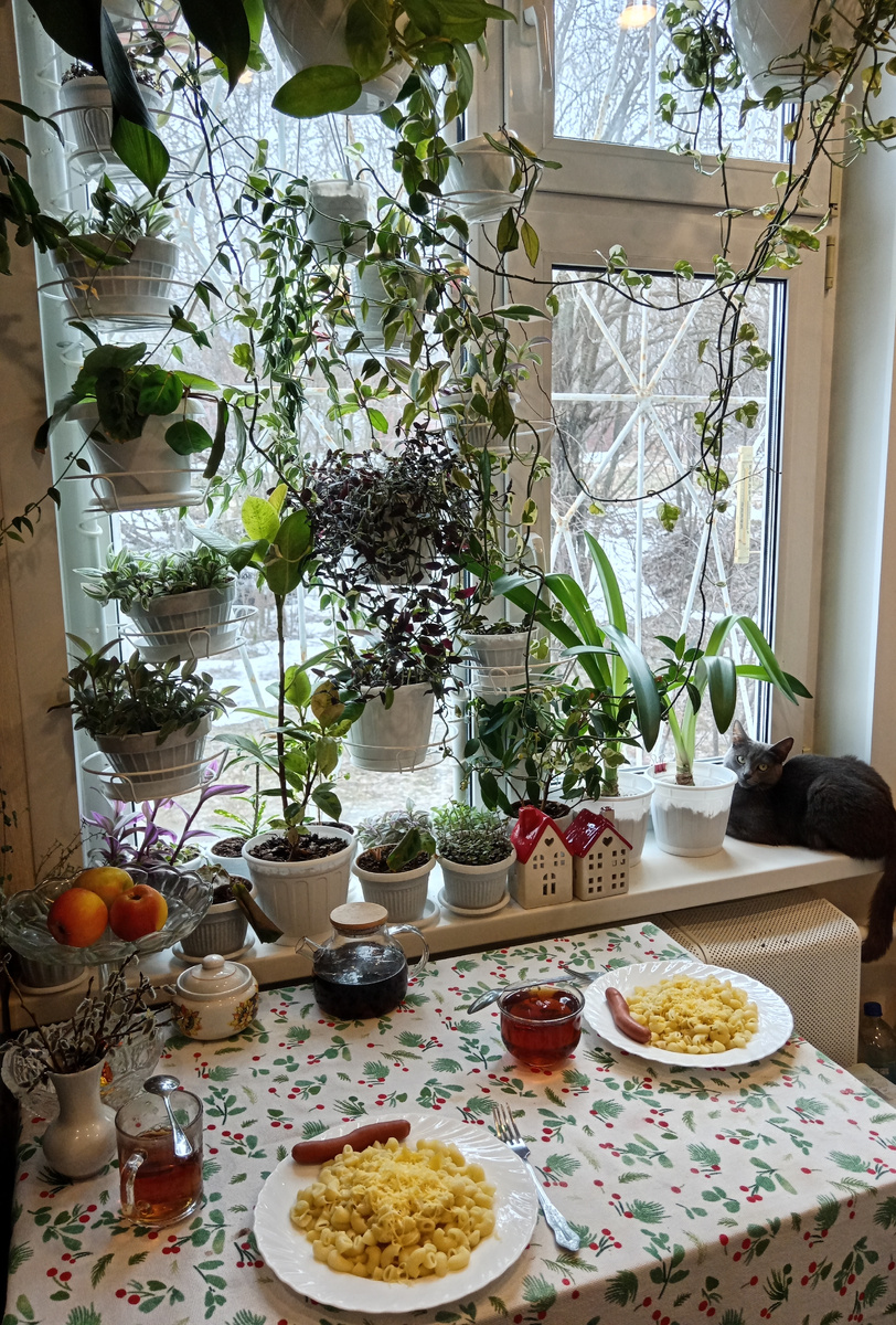 Наелась и на тёплый подоконник запрыгнула серая мышка.