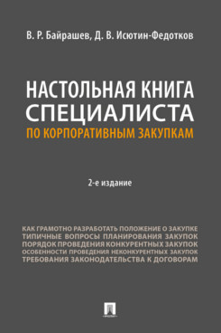 Издательство Проспект выпустило 2-е издание Настольной книги специалиста по корпоративным закупкам В.Р. Байрашева и Д.В. Исютина-Федоткова. В книге есть обновления рда разделов, включая новые правила импортозамещения и обзор новой редакции КоАП РФ. Приобрести книгу можно на сайте издательства здесь.