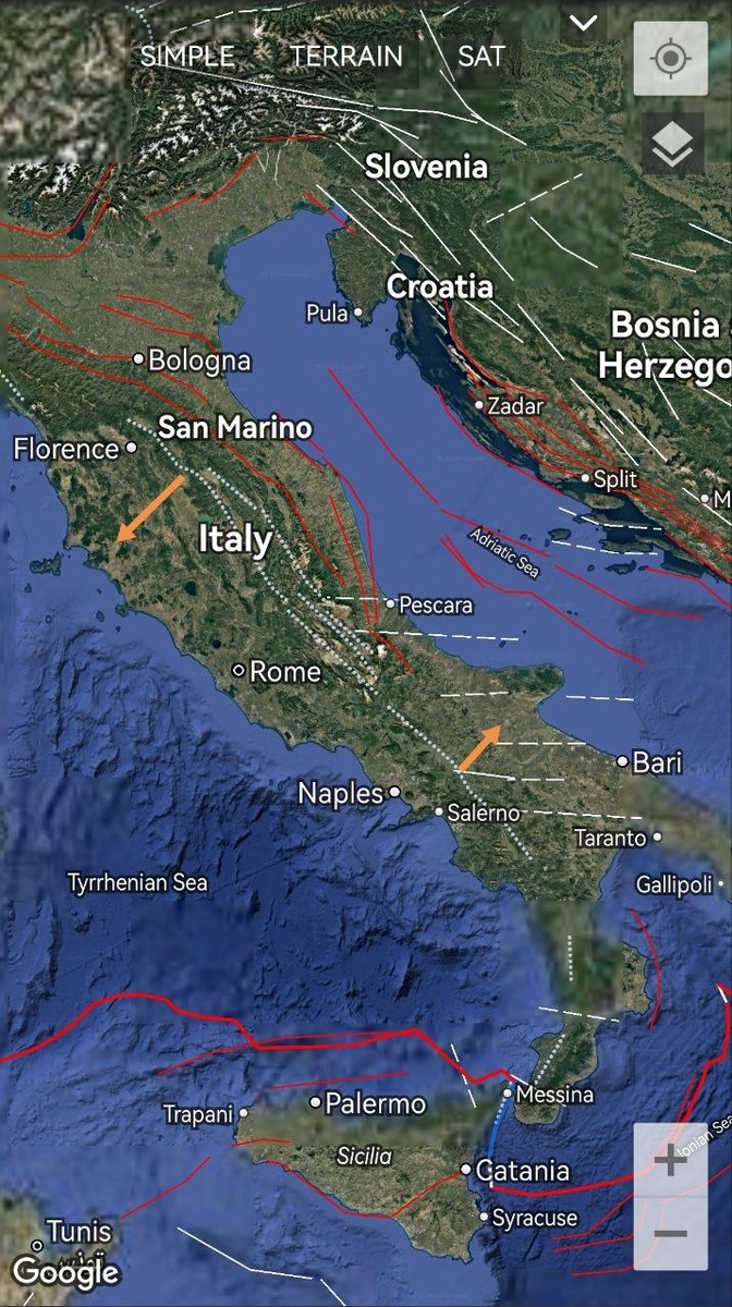 Для Италии есть вероятность ощутимого землетрясения в течение 7 дней.