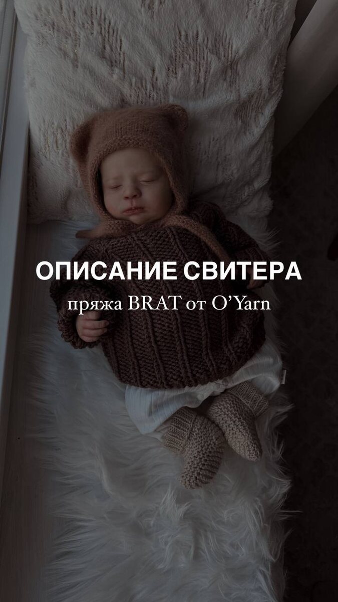 Ссылка на пряжу BRAT от O’Yarn В мотке 100г - 120м Цвет 04 📎Малышковый свитерок на 3-6 месяцев 📎Альтернативой будет Alize Soperlana Maxi, либо любая другая, подходящая по метражу 📎Плотность 10см - 10п 📎Спицы 6мм 📎Узор 3 изнаночные, 1 лицевая ⭐️ У меня ворот 40п Распределение: каждая РЛ по 1п, перед и спинка по 13п, рукава по 5 Узор заранее необходимо распределить, отталкиваясь от центра, там лицевая петля, от неё и «пляшем» в стороны 😄 1⃣Ворот (низ и манжеты) резинкой 1*1 на укороченных 5мм, всего 6 рядов Далее уже на основных спицах вывязываю росток, развороты по переду 2-2 с каждой стороны Если не знаете, как вязать росток - рекомендую курс ВСЕМ НОРКА! ‼️Там как раз есть базовый свитер с ростком, где можно раз и навсегда этому научиться! Кстати, чепчик с ушками Мишки тоже с этого курса, там 7⃣МК 🎁 кладезь знаний 2⃣Вяжем кокетку, делая прибавки через ряд до необходимой длины РЛ (у меня 12см) Затем отделяем рукава, добавляем подрезы (мои по 3п для соединения узора переду