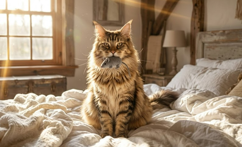 Теперь посмотрите на себя глазами вашей кошки. Вы - огромное, лишенное нормальной шерсти существо, которое совершенно не умеет охотиться. Ваша кошка никогда не видела, чтобы вы ловко подпрыгнули и поймали пролетающую птицу или часами сидели в засаде у норки. С точки зрения кошачьей логики, вы - большой подопечный, который полностью зависит от искусственного корма. Принося вам свой утренний улов в постель, кот искренне пытается вас накормить и научить базовым навыкам выживания. Это проявление глубочайшей заботы. Животное тратит свою энергию, время и рискует собой, чтобы обеспечить пропитанием своего любимого двуногого члена семьи.