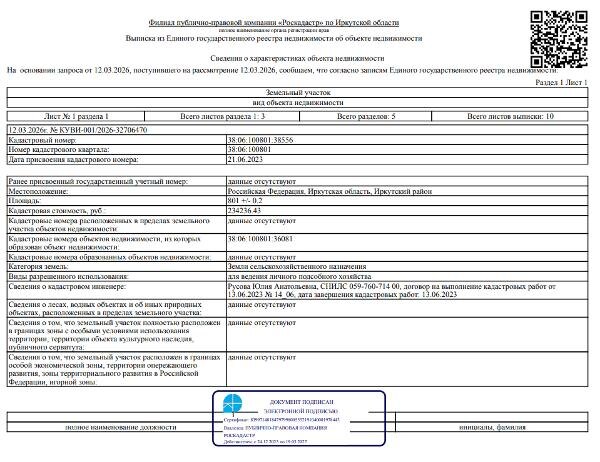 Канал: Госземля Иркутская область Область: - Район: - Населенный пункт: - Локация: Смотреть на карте ВРИ: Ведение личного подсобного хозяйства на полевых участках Кадастровый номер: 38:06:100801:38556 Кадастровая стоимость: - Вид сделки: Продажа Площадь: 801 м² Начальная цена: 108900.00 руб. Дата завершения: 24.04.2026 Подробнее: ГИС ТОРГИ #госземля #земляотгосударства #земля #земельныйучасток #земельныеторги #торги #аукцион #продажаземли #продажа #иркутскаяобласть