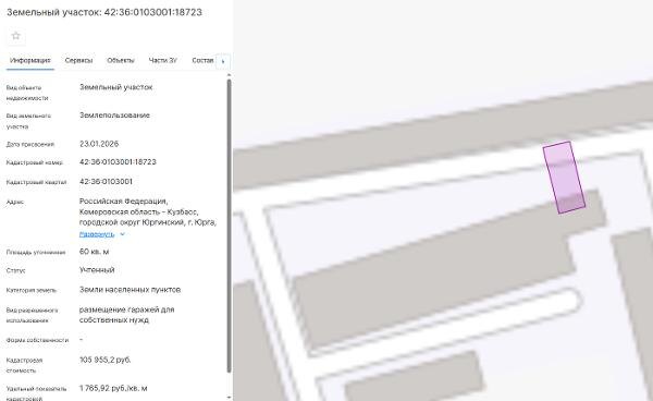 м, вид разрешенного использования: размещение гаражей для собственных нужд, кадастровый номер 42:36:0103001:18723, Российская Федерация, Кемеровская область - Кузбасс, городской округ Юргинский, г. Юрга, территория ГСК Район Автомобилист, земельный участок 1648 Канал: Госземля Кемеровская область Область: обл Кемеровская область - Кузбасс Российская Федерация Район: Кемеровская область - Кузбасс Населенный пункт: городской округ Юргинский, г. Юрга, территория ГСК Район Автомобилист, земельный участок 1648 Локация: Смотреть на карте ВРИ: Транспорт Кадастровый номер: 42:36:0103001:18723 Кадастровая стоимость: - Вид сделки: Аренда Площадь: 60 м² Начальная цена: 6000.00 руб. Дата завершения: 17.05.2026 Подробнее: ГИС ТОРГИ #госземля #земляотгосударства #земля #земельныйучасток #земельныеторги #торги #аукцион #арендаземли #аренда #кемеровскаяобласть