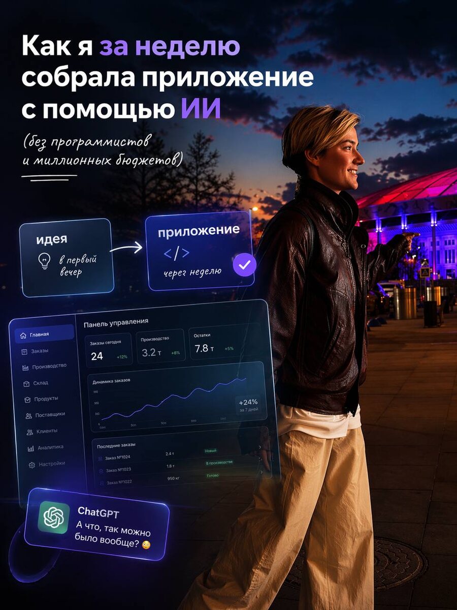 Хотя я люблю технологии. У меня дома все умное, я скупаю Apple, новые гаджеты, тестирую всякие штуки. Но когда я попробовала DeepSeek, он выдал мне какую-то ерунду и я разочаровалась в ИИ. + Само приложение выглядело сырым и недоработанным. Поэтому было ощущение: «ну да, прикольно, но пользоваться этим пока невозможно». Все поменялось, когда друг помог установить мне оригинальный ChatGPT в РФ. И вот тут у меня случилось настоящее «а что, так можно было вообще?» 🔵Через полгода мы с Анжеликой (помните моего бизнес-партнера по онлайн-школе?) придумали сделать свое приложение. В первый же вечер, я пошла искать сервис, где можно быстро собрать хотя бы примерный прототип дизайна. Нашла. И произошло чудо: вместо прототипа, сервис собирал мне не просто дизайн, а сразу готовое приложение через ИИ. То есть, прямо с кнопочками, с кодом и всем тем, что нужно. Я не айтишник. Я никогда не писала код. У меня было любопытство, любовь к технологиям и желание разобраться. Параллельно мы начали о