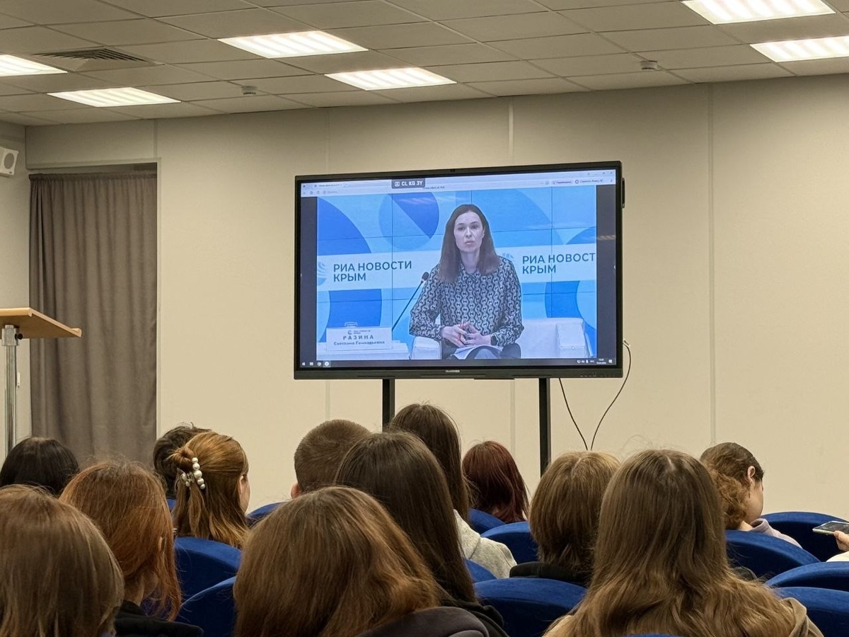 Телемост между Студенческим медиацентром ЛНР и РИА Новости Крым, посвящённый развитию радиоиндустрии в нынешних реалиях, состоялся 10 апреля в рамках проекта «Медиамастерская: спасательный круг в информационном потоке». 📌Мероприятие прошло на базе молодёжного центра «Современник» ЛГУ им. В. Даля. Главным спикером встречи выступила Светлана Разина — шеф-редактор информационного агентства и радио «Спутник в Крыму». Среди почётных гостей присутствовал председатель Общественной палаты ЛНР, проректор по информационной политике, патриотическому воспитанию и студенческим проектам ЛГУ им. В. Даля Сергей Ковалёнок. На прямой связи находились студенческие и юнкоровские аудитории из Херсонской области, Севастополя, Луганска и Донецка. На встрече присутствовали представители студенческих СМИ нескольких вузов: ➡️Луганский государственный университет имени Владимира Даля; ➡️Донбасский государственный технический университет; ➡️Луганский государственный аграрный университет имени К.Е. Ворошилов
