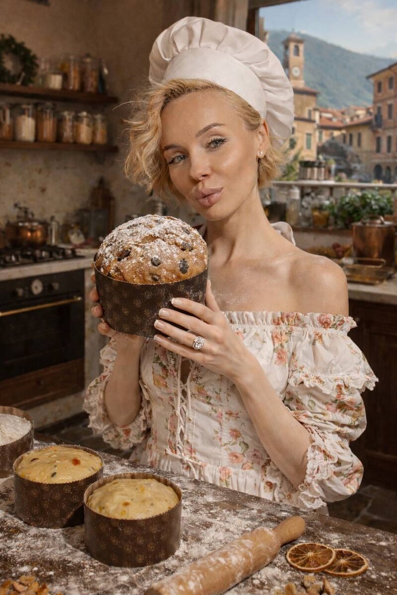 Панеттоне Ингредиенты Молоко — 70 мл Дрожжи сухие — 1 ч. л. Яйца — 2 шт. Яичный желток — 1 шт. Мука — 250 г Сахар — 2 ст. л. + 1 ч. л. (для опары) Сахар ванильный — 5 г Сливочное масло — 80 г Растительное масло — 30 г Соль — 3 г Лимонная цедра — 1 ч. л. Цукаты — 160 г Изюм / вишня — 20 г Шоколадные капли — 100 г Бренди — 60 мл Молоко для смазывания — 1 ст. л. Подготовка цукатов Цукаты и изюм (или вишню) хорошо промыть в тёплой воде, залить бренди, накрыть и оставить на 4–6 часов. Опара В тёплом молоке развести дрожжи и 1 ч. л. сахара, накрыть и оставить на 5–6 минут. Основное тесто Через 5 минут добавить: яйца комнатной температуры сахар ванильный сахар растительное масло Хорошо перемешать миксером. Просеять муку с солью, добавить в тесто и перемешивать миксером: сначала на низкой скорости затем увеличить скорость и месить ещё 6–7 минут Тесто начнёт собираться в шар. Добавить сливочное масло комнатной температуры и снова перемешивать миксером 5 минут. Добавить цедру. По желанию — ш
