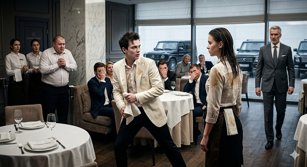 Алина стояла неподвижно. Липкая жидкость стекала по спине, щипала глаза. В зале ресторана стало тихо — гости за соседними столиками замерли, официанты попрятались по углам. Менеджер смены, полноватый мужчина по имени Эдуард, подбежал не к Алине, а к Артему.