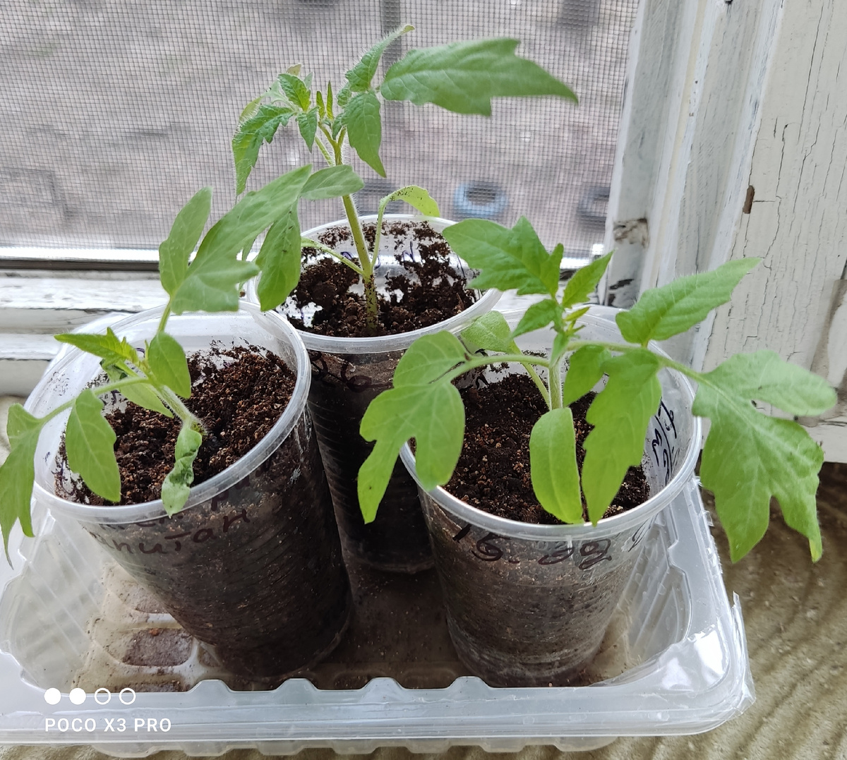 Не выдержала душа, хочется всё высадить побыстрее. И вот, посадила 4 томата: 2 шт Органза, 2 шт Лазурный гигант. Высадила вчера, а сегодня они прямо похорошели!