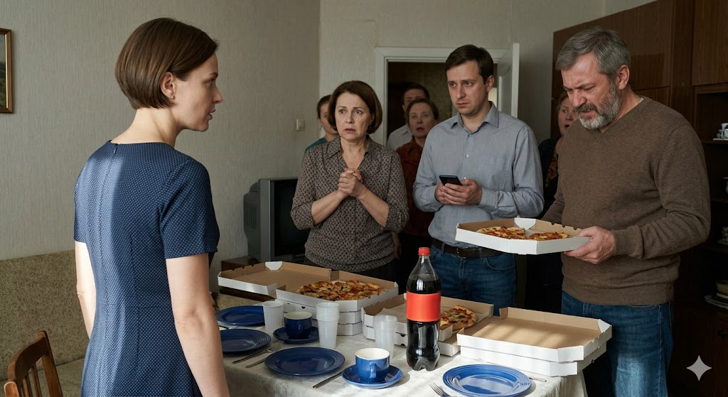 — Пиццу?! — свекровь схватилась за сердце. — Моему брату с его гастритом — пиццу? Катя, это бунт! Ты обязана была приготовить!