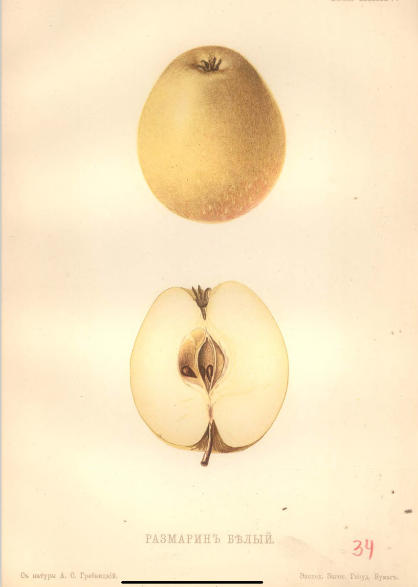 Примечание: В Российской империи этот сорт часто называли «Белое итальянское розмариновое» или «Тирольское яблоко».