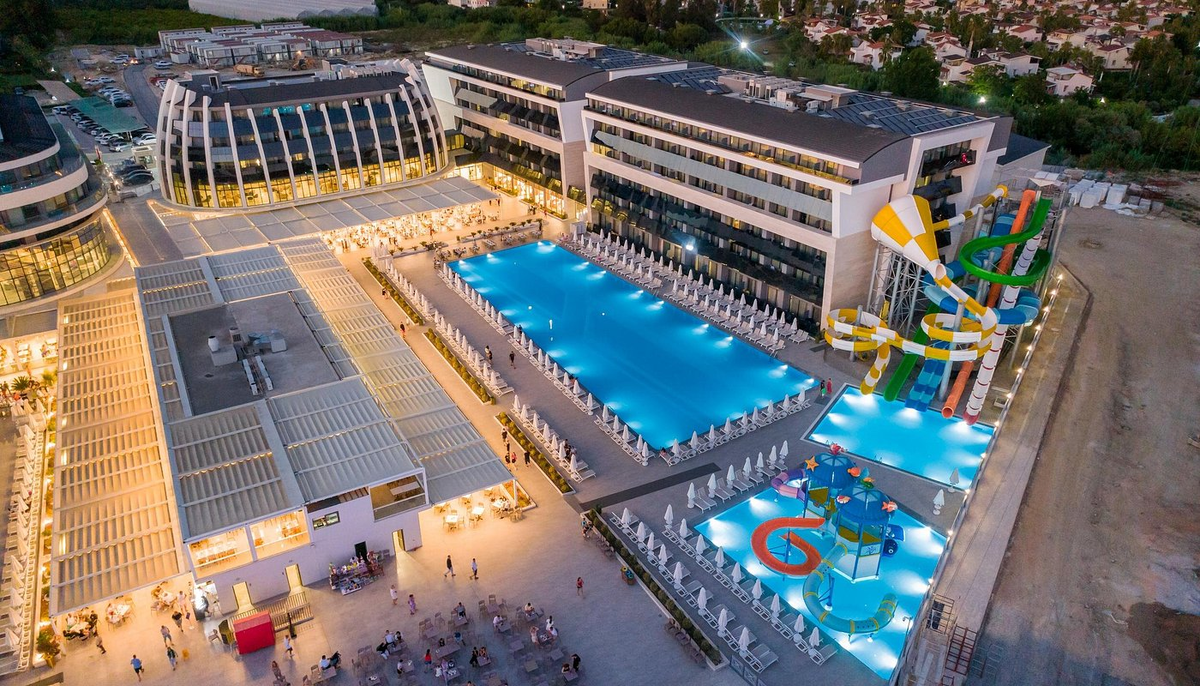 Victory Volare Hotel 5* открылся в 2023 году — и уже успел заявить о себе как один из самых интересных новых отелей в Сиде. Он входит в группу Victory Hotels, которая известна на российском туристическом рынке насыщенной концертной программой.