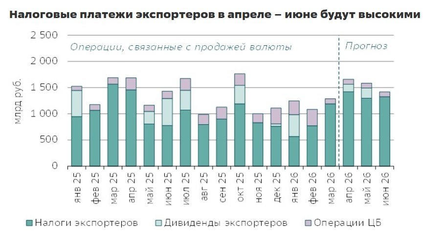 : USD по 67 RUB в мае 2026г На прошлой неделе цены на российскую нефть Юралз достигали $116/барр., на этой скорректировались примерно до $100/барр. Это самые высокие уровни с 2014 года Впереди — продажи резко выросшей валютной выручки и рост нефтегазовых доходов бюджета. А бюджетное правило (по которому Минфин покупал бы валюту в апреле и мае) приостановлено