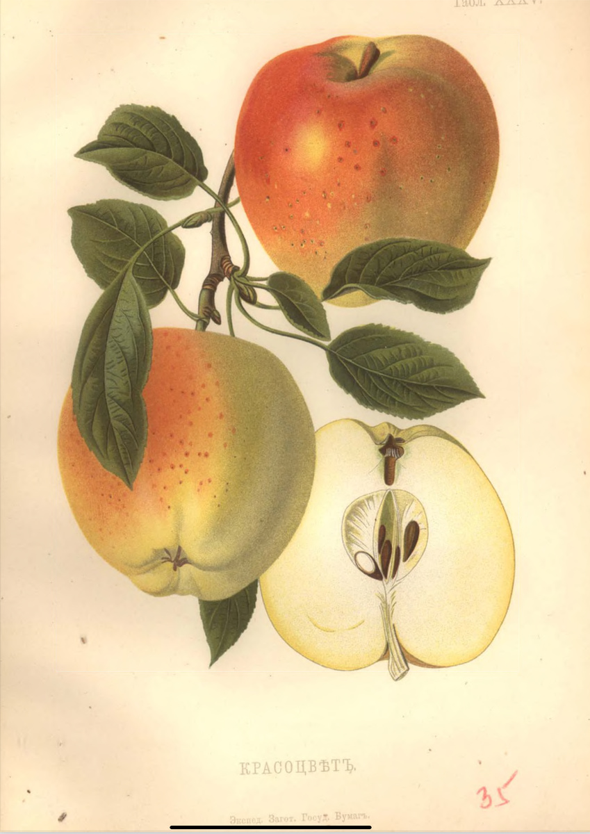 - Коммерческое использование: На юге России (особенно на Северном Кавказе) Красоцвет признан перворазрядным, элитным десертным сортом. Благодаря потрясающей красоте, размеру, плотности и вкусу, он пользовался огромным спросом у оптовиков для вывоза на столичные рынки, стабильно держа очень высокую цену (от 4 до 6 рублей за пуд). Рекомендовался как один из самых ценных и выгодных сортов для промышленного южного садоводства (как идеальная, более неприхотливая замена капризному Зимнему Белому Кальвилю).