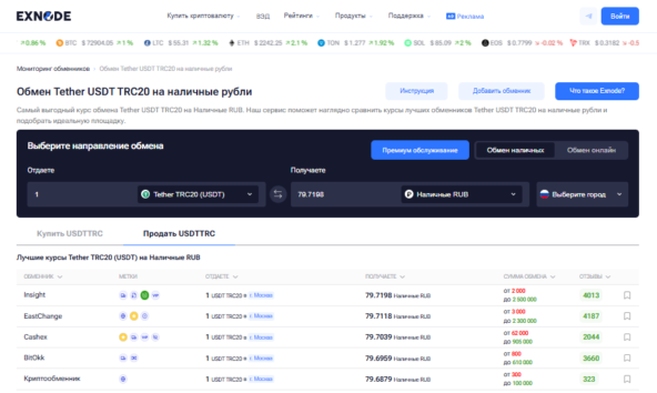 Мониторинг криптообменников в России 2026 на Exnode