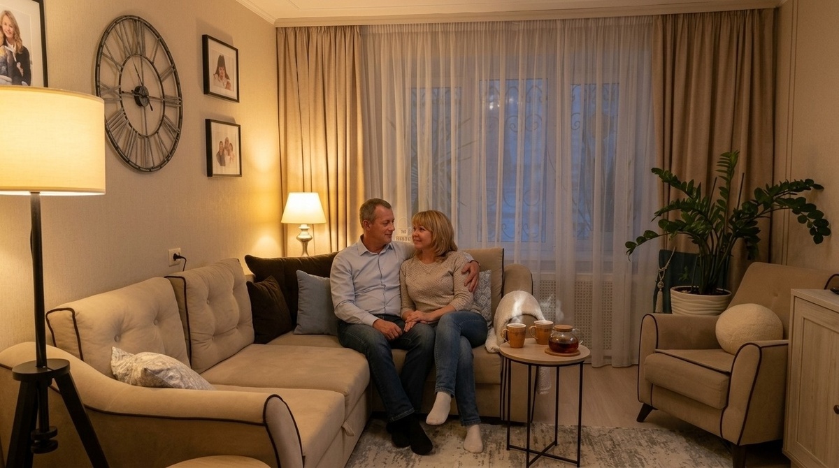Когда мы покупали эту квартиру — нам было по тридцать с небольшим. Дима говорил: трёшка, отлично, детям по комнате и нам своя. Всё продумано. Так и казалось. Пока дети не выросли. Пока Кирилл не стал подростком которому нужна тишина и личное пространство. Пока Соня не начала ставить по вечерам какие-то видео в полный голос. Пока мы с Димой не поняли что «своя комната» — это теория, а на практике мы просто место где все собираются когда больше некуда идти. 63 метра. Четыре человека. Четыре характера. Четыре разных представления о том что такое «тихо» и «порядок» и «личное». Я не буду делать вид что это легко. Когда дети были маленькими — было проще. Они спали рано, мы с Димой оставались одни. Вечером — наше время. Кухня, тихий разговор, иногда вино. Сейчас Кирилл ложится позже меня. Соня может прийти в нашу комнату в десять вечера и начать что-то рассказывать про школу. Дима приходит с работы и садится в гостиной с телефоном. Все дома — и при этом каждый в своём мире. И мы с Димой где-т