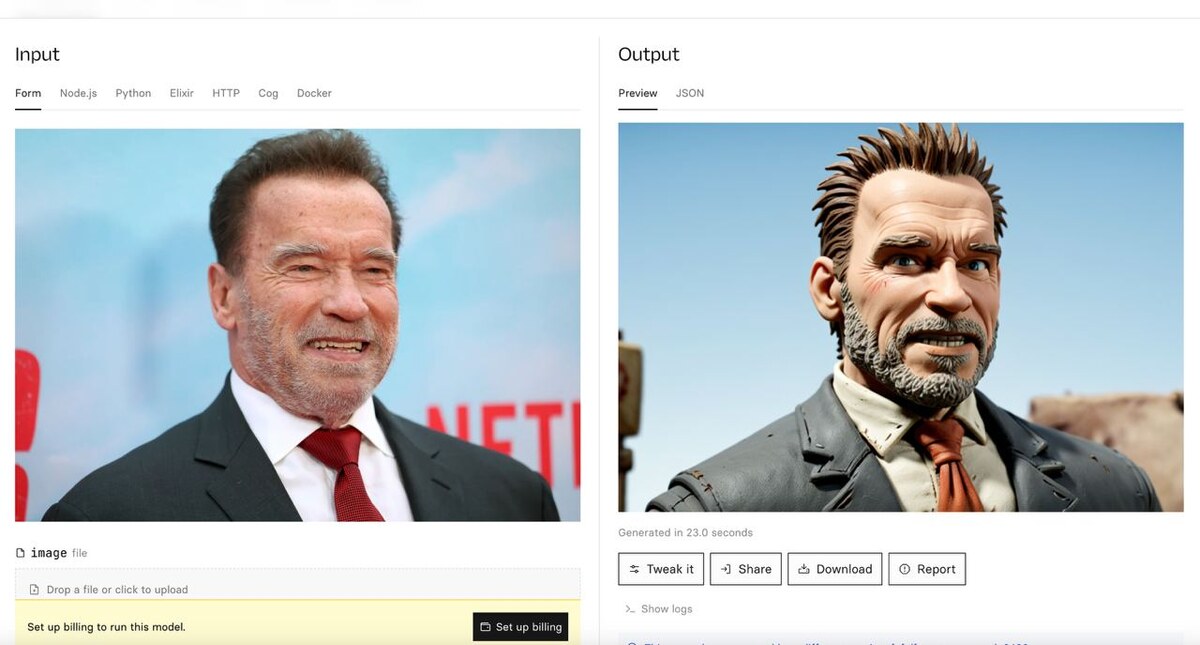На Replicate появился сервис Face To Many — модель для стилизации изображений, которая умеет преобразовывать портреты в самые разные визуальные форматы.
