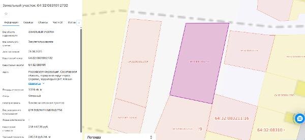м с кадастровым номером 64:32:083101:2732, описание местоположения: Саратовская область, городской округ город Саратов, территория СНТ Атлант - Широкий Буерак, земельный участок 33/1 Канал: Госземля Саратовская область Область: обл Саратовская Район: г.о. город Саратов Населенный пункт: г Саратов Локация: Смотреть на карте ВРИ: Ведение садоводства Кадастровый номер: 64:32:083101:2732 Кадастровая стоимость: - Вид сделки: Продажа Площадь: 1074 м² Начальная цена: - руб. Дата завершения: 11.05.2026 Подробнее: ГИС ТОРГИ #госземля #земляотгосударства #земля #земельныйучасток #земельныеторги #торги #аукцион #продажаземли #продажа #саратовскаяобласть