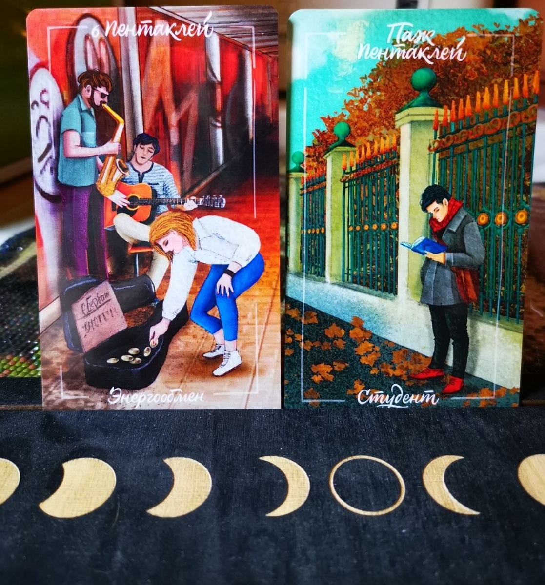 И мы про выходные. 🌤 Суббота - Шестерка Пентаклей Бытовая сторона: Суббота разворачивается вокруг темы обмена. Не просто «дать» или «взять», а именно почувствовать баланс - где ты отдаешь, а где принимаешь. По картинке это очень живо видно: один играет, другой поддерживает, третий помогает. Это не про одиночество, это про взаимодействие в потоке жизни. День может принести ситуации, где кто-то поможет тебе - или ты окажешься тем, кто протягивает руку. В бытовом плане это могут быть деньги, подарки, небольшие переводы, помощь по мелочи, поддержка. Иногда даже простое «угостить» или «поделиться» становится ключевым моментом дня. Но важный нюанс - не из жалости и не из долга. Если есть перекос, ты это почувствуешь. Карта очень чувствительна к справедливости. Психологический настрой: Внутри поднимается тема ценности. Своей и чужой. Ты начинаешь тоньше ощущать - где тебя недодают, а где ты сам отдаешь слишком много. Может прийти осознание, что не всякая щедрость полезна, и не всяка