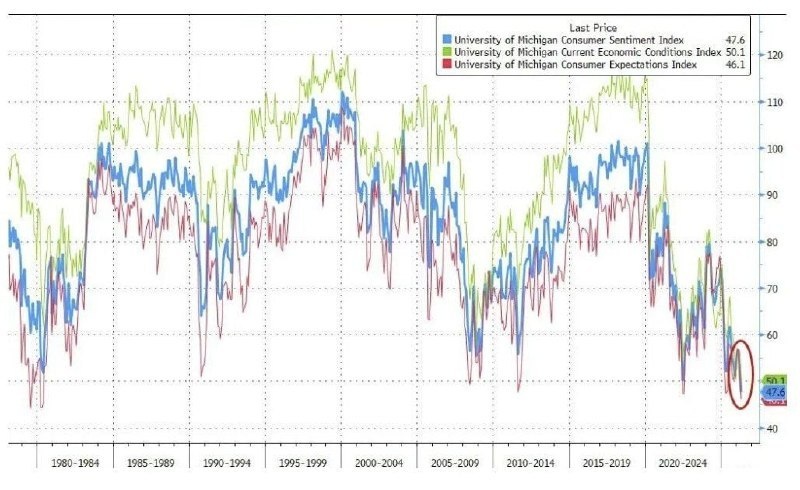 ! Сегодня в США случился финансовый шок — индекс потребительских настроений рухнул до самого низкого уровня в истории. Это сигнал тревоги для каждого, кто думает о своих деньгах и инвестициях. 🤬 Люди стали меньше тратить, что жёстко вдарит по ритейлу и компаниям, завязанным на потребительский спрос. Больше всего пострадают акции крупных ритейлеров и компаний с высокой долговой нагрузкой, а деньги побегут в защитные активы, такие как золото и гособлигации. Мой совет — держитесь подальше от хайповых рынков и приготовьте кэш — кризис только нарастает. #новости #БезПафосаФинансы #потребительскиенастроения #экономика #МыслиАлекса