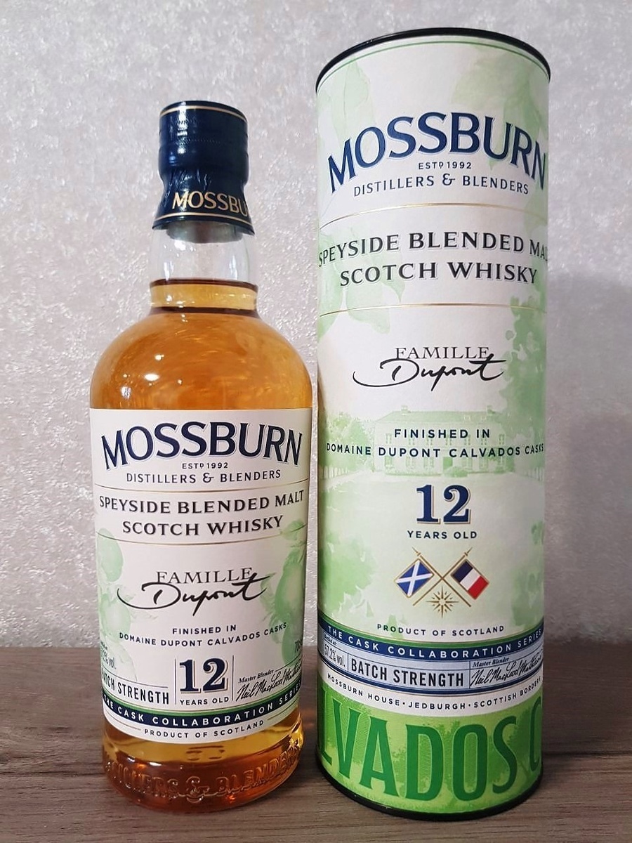 Здесь обзор второго релиза после Mossburn 12 Foursquare Rum Casks Finish серии Cask Collaboration от компании Mossburn Distillers & Blenders. У этой смеси сингл молтов из различных винокурен Спейсайда интересная выдержка. Сначала солодовые дистилляты зрели от 12 и более лет в бочках из-под бурбона первого наполнения. Затем купаж поместили во французские бочки от Domaine Dupont из-под выдержанного кальвадоса, в которых предварительно созрел яблочный напиток Поммо (смесь не ферментированного яблочного сусла с кальвадосом, крепостью 17-18%) - придавший кальвадос-дистилляту дополнительные и сладкие, и свежие (с кислинкой) оттенки. Mossburn Speyside Blended Malt Calvados Dupont Cask Finish 12 YO, крепость - 57,2%, без колера и без фильтрации, бочки - (экс-бурбон, финиш - французский дуб из-под Поммо и кальвадоса), бутилирован - ноябрь 2024. На Вискибазе оценка 84+. У обзорщиков не встречал оценки ниже, зато попадались и 85, и 86,5. На аромате сразу же чувствуется сильное влияние бочки из-п