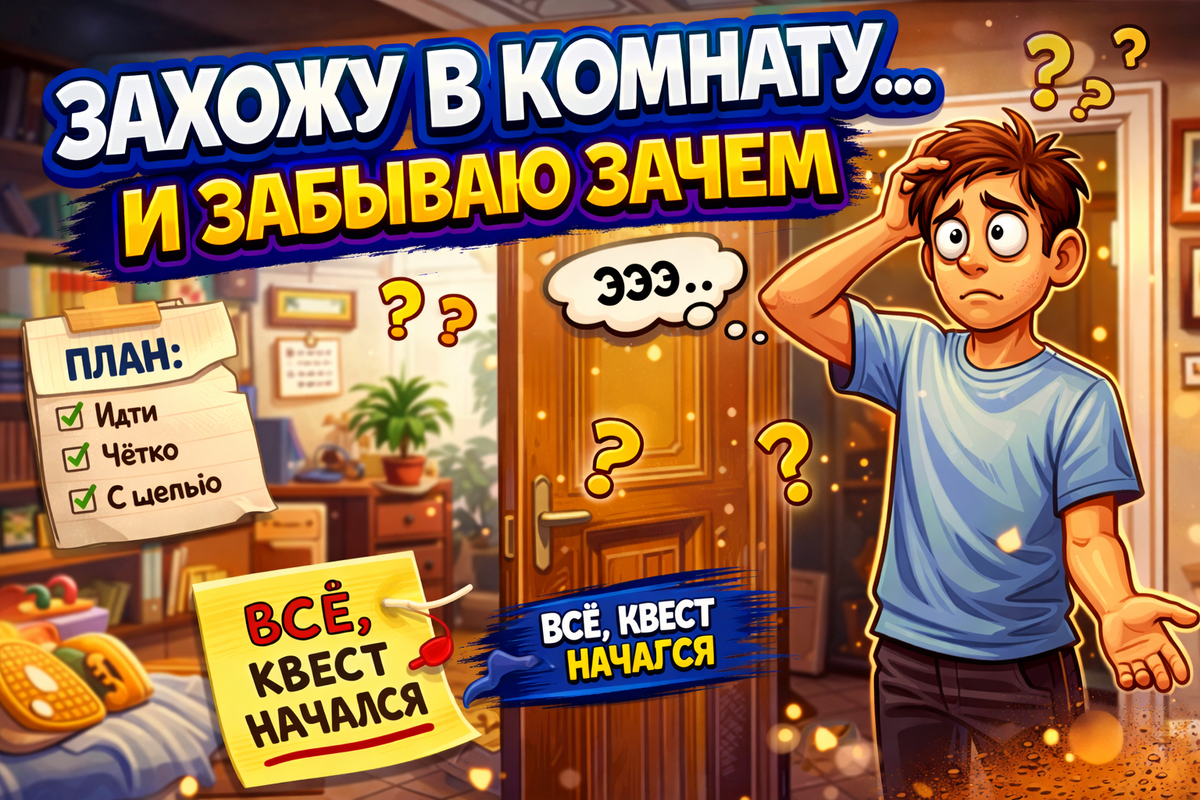 Типа мозг такой: «Новая локация — новая задача». Но звучит это, честно, как оправдание. Потому что ощущается это так, будто в голове просто кто-то выключил свет. Особенно больно, когда ты реально шёл за чем-то важным.