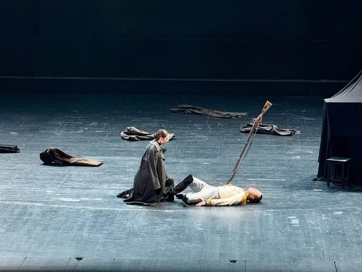 Режиссёр Римас Туминас. Премьера ноября 2021 года, 4:45 с 2 антрактами (поклоны были в полночь, планируйте обратную дорогу). 🔤етырёхтомная эпопея Льва Толстого в рамках одного элегантного в своей простоте спектакля. Декорации практически отсутствуют, буквального пересказа также нет, а есть лирическое размышление режиссёра о вечных вопросах любви, смерти и смысле жизни человека в момент слома исторических эпох. 🔤пектакль я уже смотрела в премьерный год до всех драматичных событий и когда ещё был жив Римас. По ощущениям действительно другая эпоха... Роман перечитала накануне и это сыграло со мной злую шутку. Не хватило много важных для меня акцентов и сцен, таких как ночной полёт на балконе Наташи Ростовой, монолог Андрея Болконского под небом Аустерлица, философских поисков Пьера Безухова и многого другого. Но я рада, что поход в театр сподвиг перечитать новым взрослым взглядом великое произведение! 💙Проголосовать за канал 📲Москвичка в MAX #театры@moskvichkatg