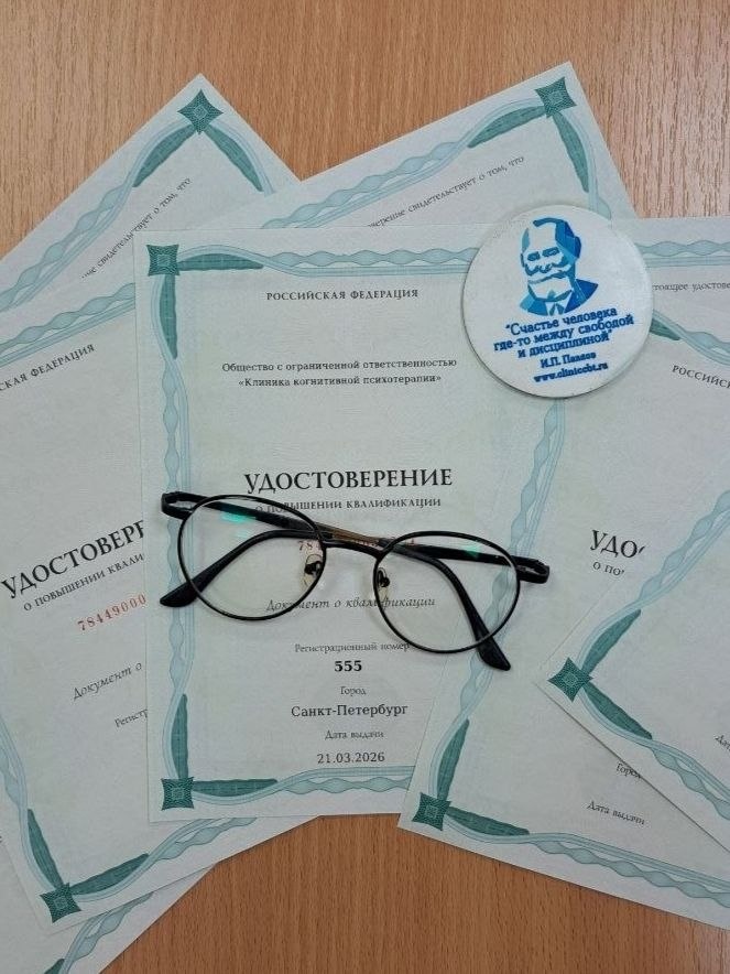 ! 555 Удостоверений о повышении квалификации мы оформили нашим слушателям и рады анонсировать Новый набор на 2026 - 2027 год 🎓 🎓 Базовый курс когнитивно-поведенческой терапии Ведущий: Павлов Сергей Валентинович - психолог, кандидат медицинских наук, супервизор в КПТ подходе, преподаватель c 19-летним стажем, автор более 40 публикаций в международных и российских научных журналах Старт 7 ноября Онлайн с 10:00 до 17:00 по МСК Подробнее: cbtclinic.education/cbt_study 🌿 Также, в июле стартует 2 поток курса "КПТ тревожных расстройств" Ведущий: Павлов Сергей Валентинович Старт 13 июня Онлайн c 10:00 до 17:00 по МСК Подробнее: cbtclinic.education/cbt_anxiety Благодарим вас за выбор наших программ и приглашаем принять участие в наших новых проектах!