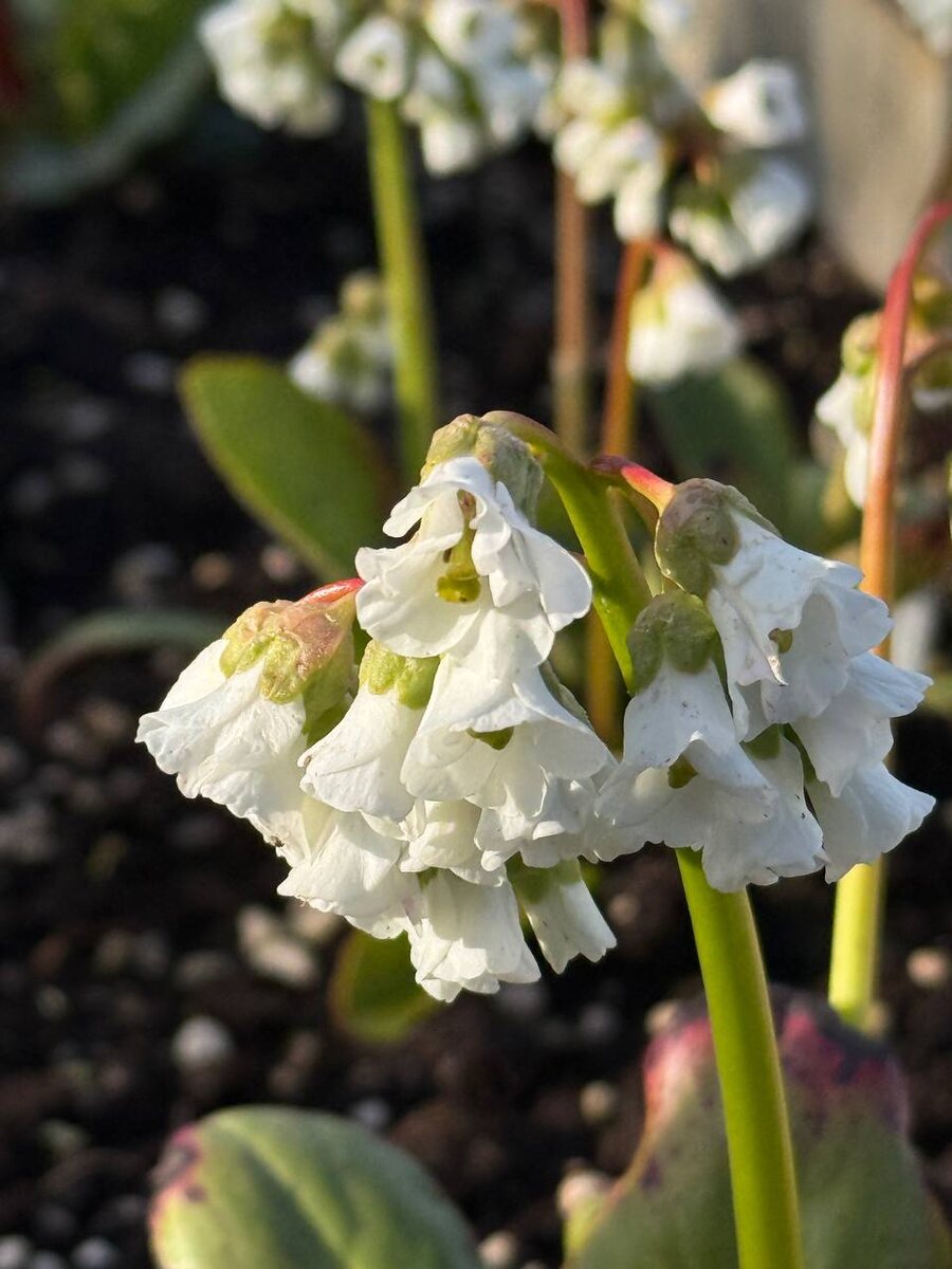 Бадан сердцелистный ‘Сноутайм’ (Bergenia cordifolia Snowtime) — компактный многолетник высотой до 30 см с крупными глянцевыми тёмно-зелёными