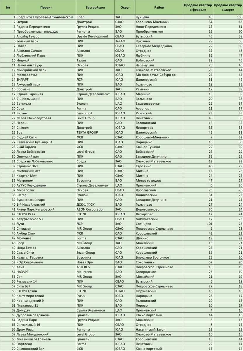 🔝 ТОП-70 самых продаваемых новостроек Москвы — март 2026