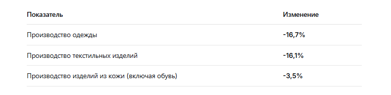 - Кемеровская область: падение на 44%. Здесь легпром, часто выступающий как сопутствующая отрасль, не выдержал общей трансформации экономики региона.