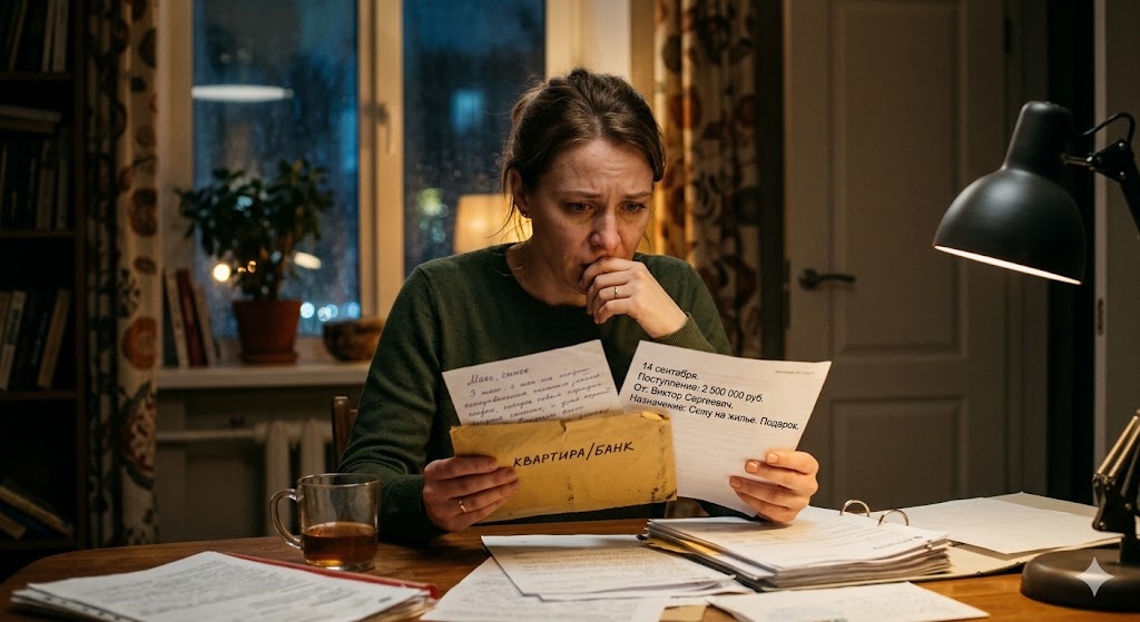 — Она сказала, что так будет справедливо! Что он алименты не платил нормально, что это её деньги по праву, компенсация за разрушенную молодость! А потом... потом она сказала, что сама нам их подарит. Чтобы... чтобы ты её уважала. Чтобы в семье был мир.