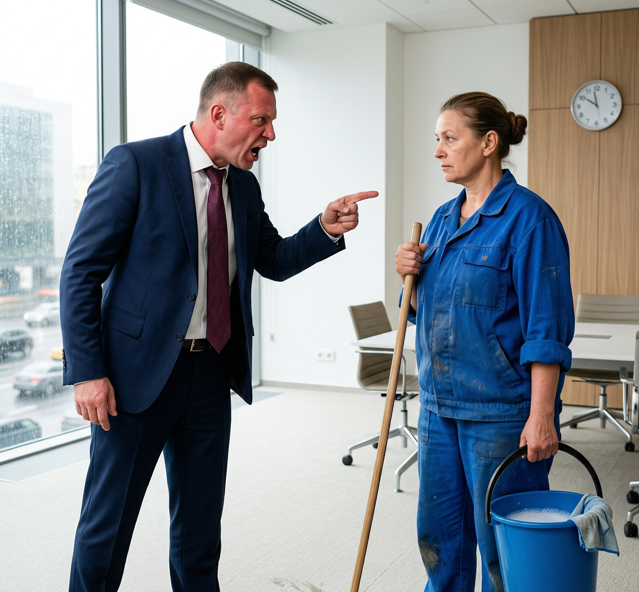 — «Уберите эту женщину, она позорит мой офис!» — кричал бизнесмен — Вон отсюда! У меня решается судьба компании, а ты тут лужи разводишь!