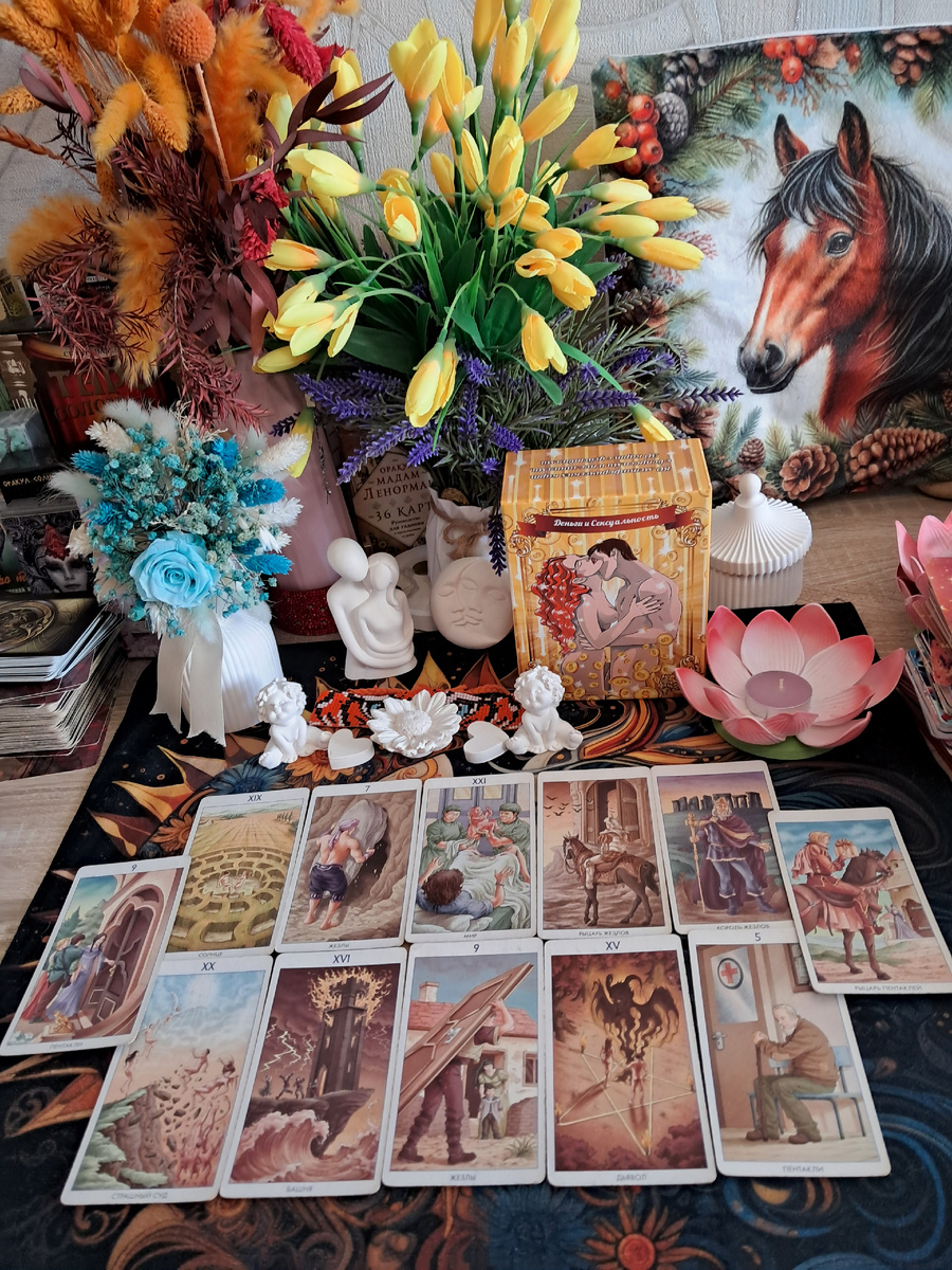Конец испытаниям подтверждается картами закрытия: Страшный суд, Башня, 9 жезлов, Дьявол, 5 пентаклей уходят навсегда. Вы больше не вернётесь в полосу разрушений, страха, зависимости и унижений. А открываются двери к победе, признанию, свободе и личной силе.