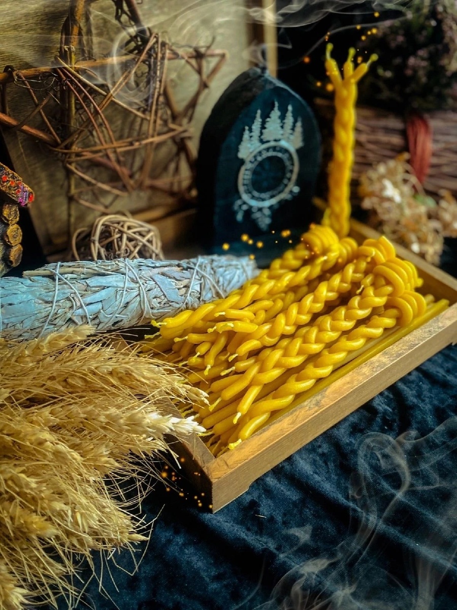 - Секрет: В идеале свеча должна быть «сученой» — свитой из трех тонких свечей в одну. Это символизирует единство трех миров или трех сил (отца, матери и ребенка). При скручивании воск должен быть теплым, податливым, впитывающим ваши мысли. 🧶✨