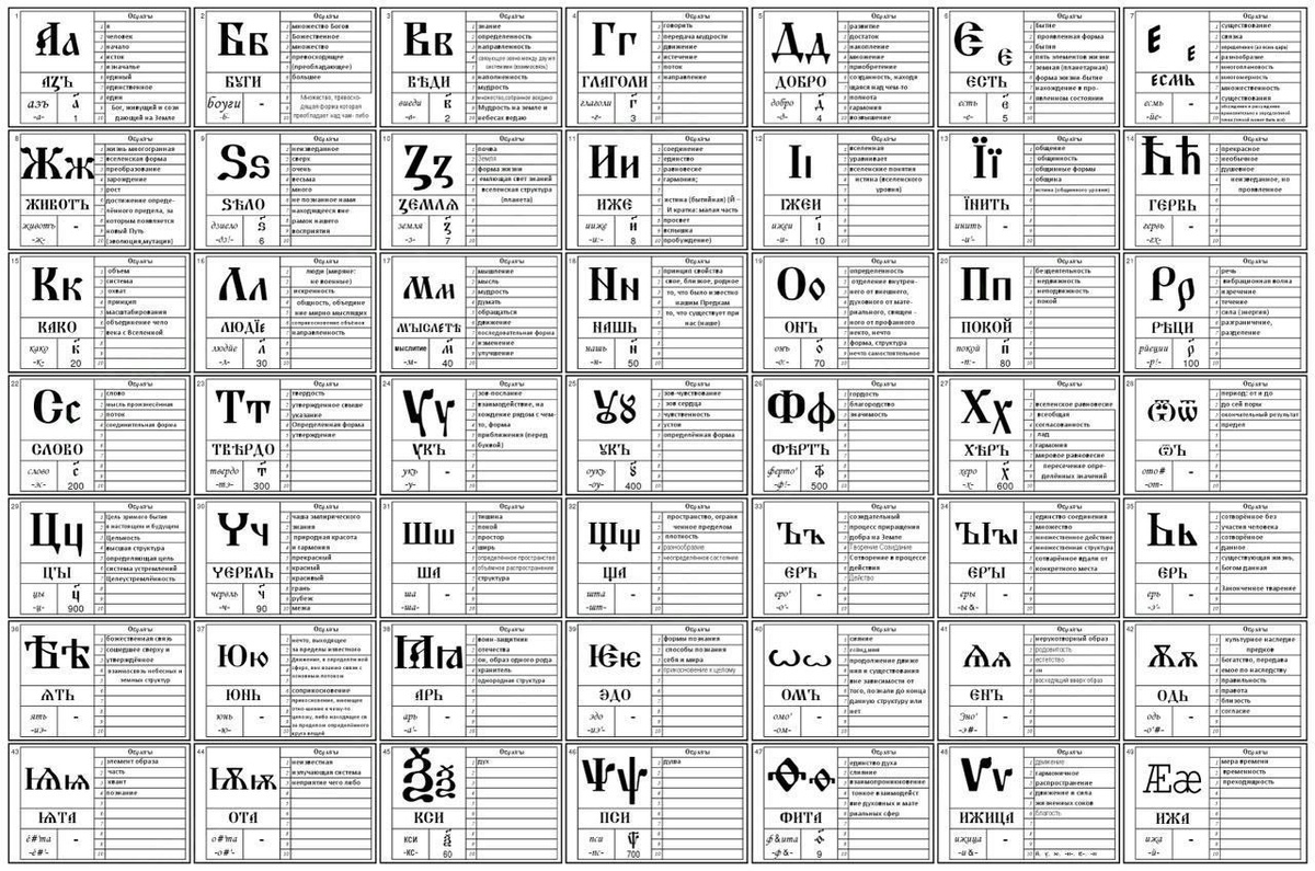Именно так выглядел русский алфавит до 19 века, реформами у нас украли более 100 тысяч слов! Раньше каждая буква несла в себе смысл, а не только звук.