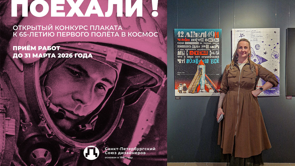 ВЫСТАВКА ПЛАКАТА «ПОЕХАЛИ!» #MUSplix_event #MUSplix_события Вчера в Государственном литературном музее «ХХ век» (выставочное пространство в Ледовом дворце) открылась выставка плакатов, посвящённых 65-летию первого полёта человека в космос. В это же время выставка демонстрировалась на мультимедийных экранах в Историческом парке «Россия — Моя история». На выставке демонстрировались плакаты авторов, прошедших в шорт-лист конкурса. И я среди них. Мой плакат называется «Космос наш». В нём знакомая каждому с детства причастность к великому событию. Все же помнят эти ракеты, они были во многих дворах и детских садах. В нашей ракете в садике были круглые иллюминаторы, которые мы затыкали цветными ведёрками, и через них проходил космический цветной свет, а вход мы закрывали одеялом — и отправлялись в путешествие, настолько удивительное, насколько хватало детской фантазии. Так что полёты в космос были обыденностью для многих русских детей. Графический ход с коллажем из газет и коллажной же типог