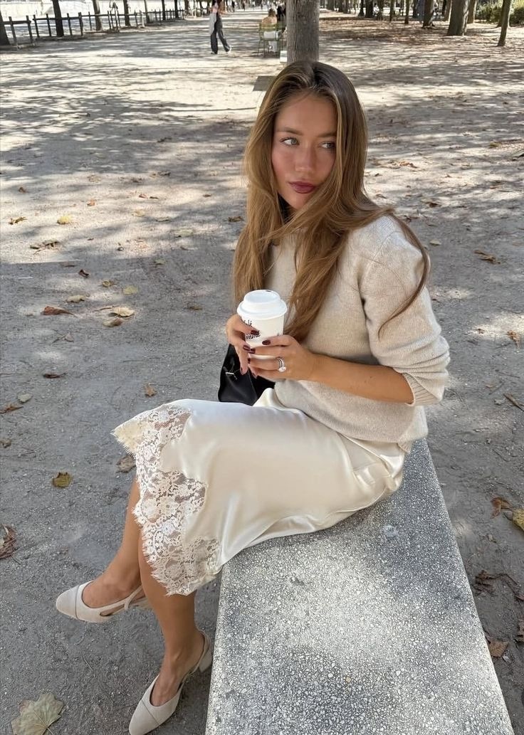 Интересный прием, который можно взять на заметку, — сочетать юбку-комбинацию из кружева с плотным верхом, например, с грубым кожаным жакетом с подкладными плечами в стиле 80-х. Это создаст дерзкий и запоминающийся образ, в котором есть место и нежности, и характеру.