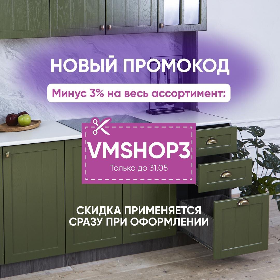 🎁 Если сумма заказа от 75 000 ₽, можно получить дополнительную скидку: Промокод VMSHOP3 — минус 3% на весь ассортимент Подойдёт, если планируете покупку дивана, кровати, кухни, шкафа или комплекта мебели — скидка применяется сразу при оформлении. Как воспользоваться: 1️⃣ Выберите мебель на vsyamebel.shop 2️⃣ Добавьте товары в корзину 3️⃣ Введите промокод VMSHOP3 4️⃣ Скидка применится автоматически Дополнительно при полной онлайн-оплате на сайте: — +3% бонусами от суммы заказа — +500 бонусов за отзыв с фото 📌 Промокод действует при заказе от 75 000 ₽ 📌 Работает только при полной онлайн-оплате на сайте 📌 При оплате при получении действует обычная цена 📌 Срок действия — до 31.05.2026 Можно совместить сразу несколько выгод: получить скидку сейчас и бонусы на следующую покупку.