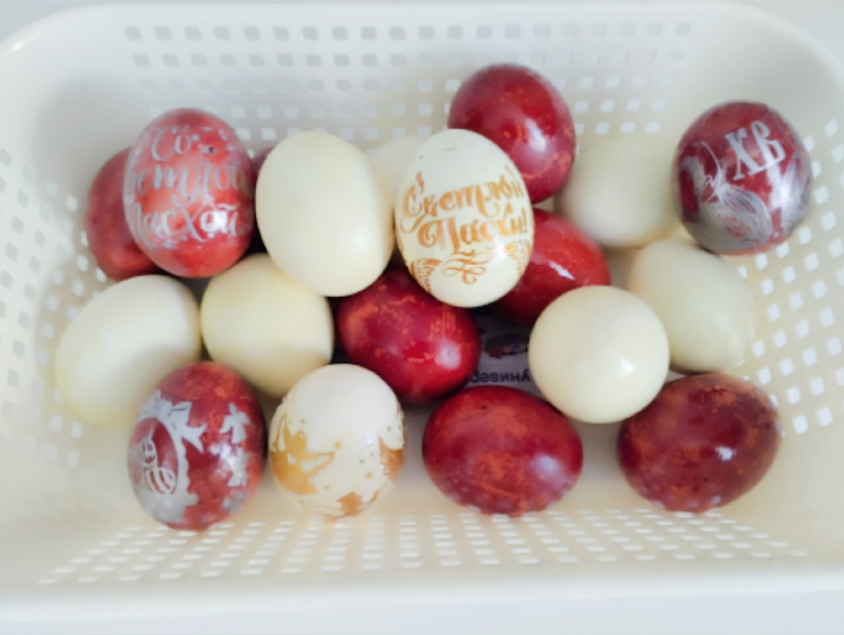 На 1 литр воды нужно 2 ст. л. куркумы. Прокипятить минут 10, остудить. Добавить в отвар соль и уксус (1 ст. л. соли и 2 ст. л. уксуса 9% на литр воды/отвара) и размешать. Затем в полученный отвар/раствор аккуратно опустить вымытые, желательно содой, яйца и сварить обычным способом (после закипания варить 8-10 мин). Оставить в отваре от 30 минут до 12 часов. В зависимости от времени нахождения в