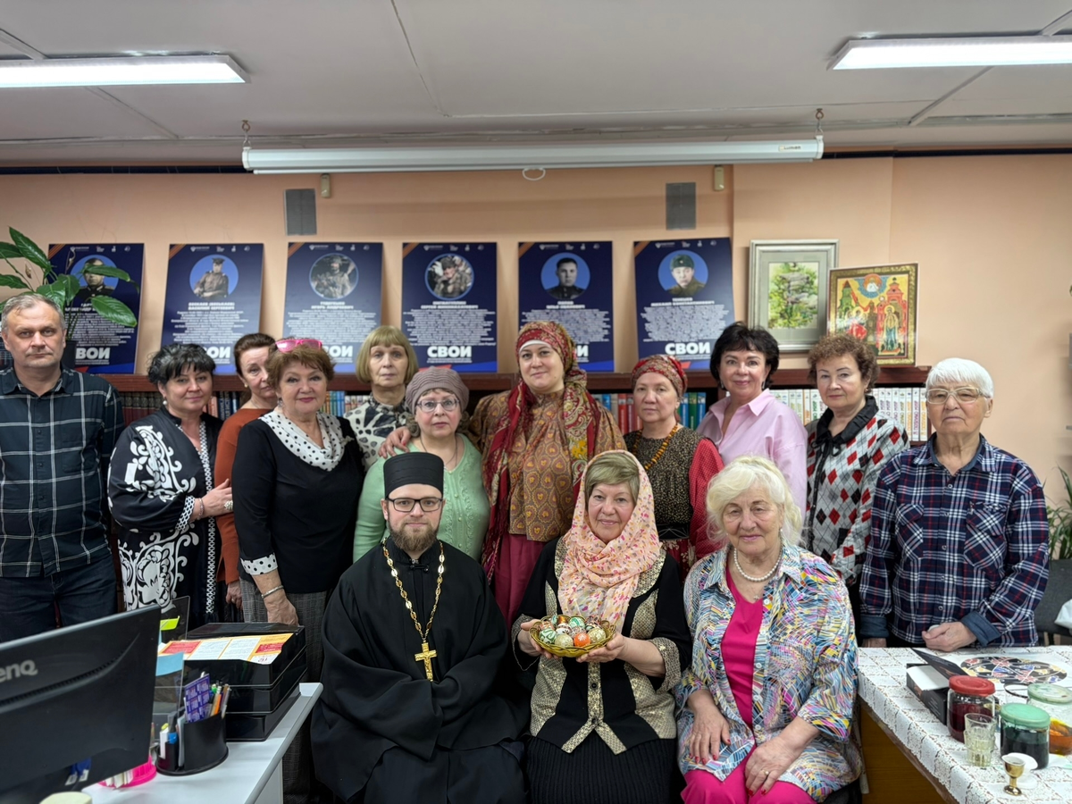 7 апреля 2026 года в библиотеке семейного чтения «На Октябрьском» г. Новокузнецка состоялось праздничное событие «Беседа о духовном. Благовещение и преддверие Пасхи: история и традиции». Во встрече принял участие настоятель храма в честь иконы Божией Матери «Феодоровская» иеромонах Зосима (Демченко). Священник рассказал собравшимся о значении праздника и его традициях. Фольклорно-этнографический центр «Щедрыня» порадовал гостей народными песнями и яркими образами. Для всех желающих провели творческий мастер-класс по разукрашиванию яиц техникой «Писанка». В завершение мероприятия состоялось чаепитие.