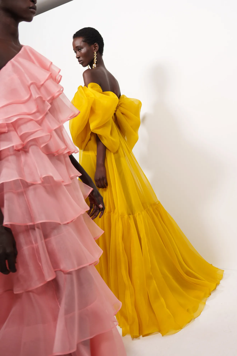 В то время как воланы (оланес) — один из самых привычных элементов вечерней моды, в этом сезоне они проявят себя в образах гостей еще ярче. Будь то акцент на определенной части платья, как в коллекциях Blumarine, или — мой любимый вариант — каскады по всему силуэту, как в работах Giambattista Valli.