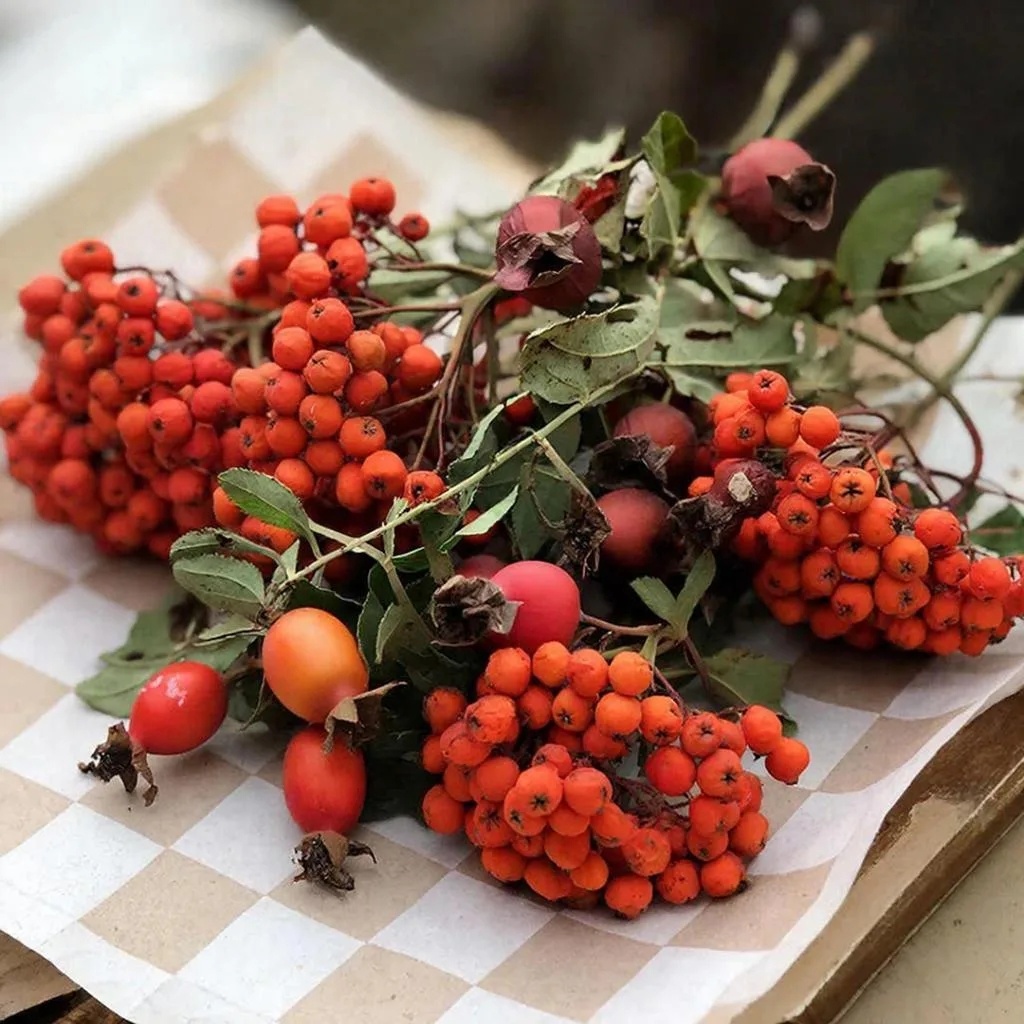 Ягодки рябины и шиповника – две столовые ложки каждой ягоды (это примерно по горсти). Почему именно они? Потому что эти плоды богаты