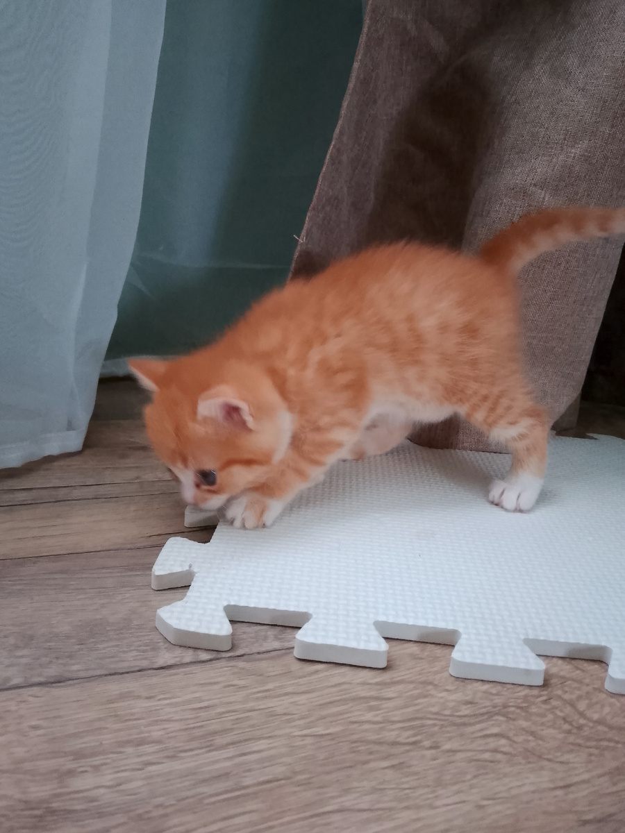 Котенок чувствует себя вполне себе. Очень игривая деваха. Периодически ищет мамку, но находит меня или я её. Сердце разрывается, когда она нянчит. Берешь на руки - мурлычет.