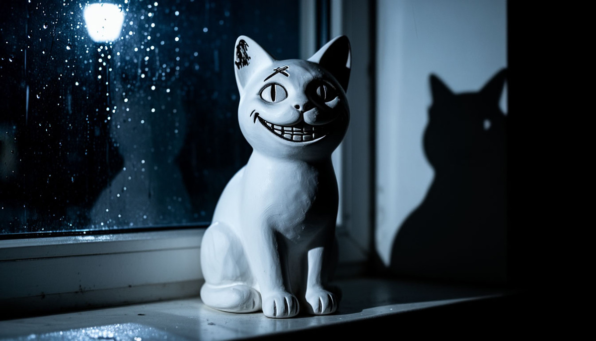 Однажды ночью она проснулась от того, что кошка дышит. Гипс не должен дышать. Но из чёрной трещины на спине — той самой, которая была «от времени» — выходил тёплый, тяжелый воздух. Не сладкий. Затхлый. Как из подвала, где что-то сгнило и забылось.