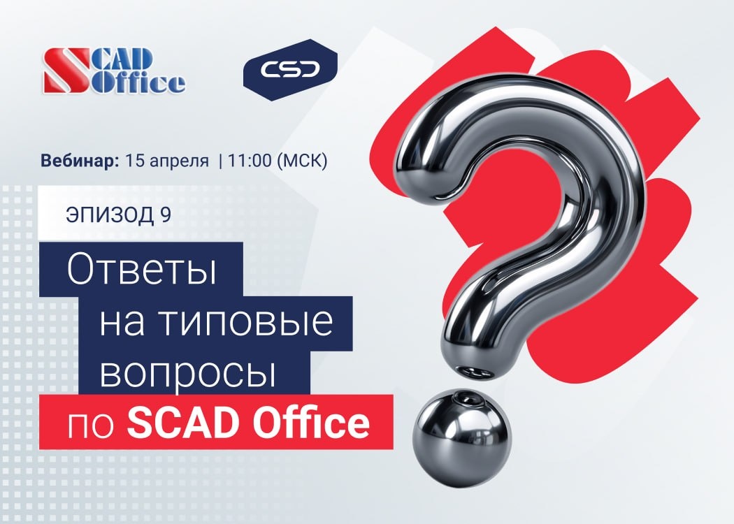 ! Приглашаем вас присоединиться к полезному вебинару «Ответы на типовые вопросы по результатам техподдержки пользователей SCAD Office». ❕Дата и время: 15 апреля | 11:00 Вебинар для вас проведут: 🫂 Ожогин Руслан Борисович - ведущий инженер технической поддержки SCAD Soft 🫂 Теплых Андрей Владимирович - заместитель генерального директора по маркетингу ООО НПФ «СКАД СОФТ», руководитель разработки. Что вас ждет? 🎯 Рассмотрим самые распространенные вопросы по SCAD Office, которые задают в техподдержку 🎯 Вы сможете задать свои вопросы в режиме реального времени и получить ответы от экспертов 🎯 Откроете для себя различные приемы и рекомендации по работе с программой 🎯 Узнаете о функциях, которые облегчат вашу работу и ускорят процесс проектирования Кому будет интересно? ✅ Инженерам‑проектировщикам строительной части ✅ Руководителям и главным специалистам строительных отделов ✅ Главным конструкторам проектных организаций ✅ Всем пользователям SCAD Office ✔️РЕГИСТРАЦИЯ #мероприятия