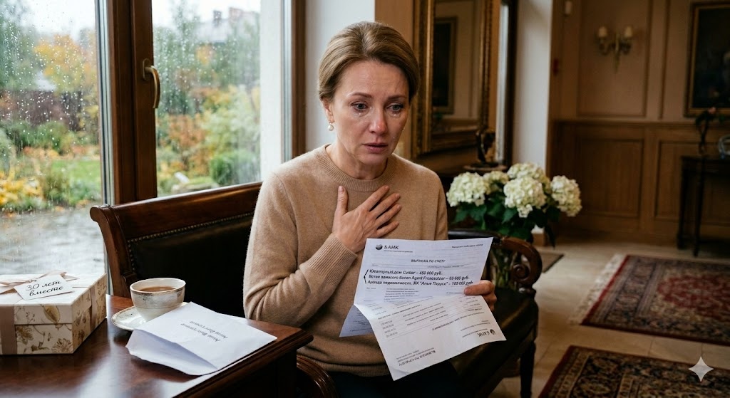 Я опустилась на пуфик в прихожей, чувствуя, как слабеют ноги, и начала читать выписку строчка за строчкой. Буквы и цифры расплывались перед глазами, но смысл врезался в мозг с безжалостной ясностью.