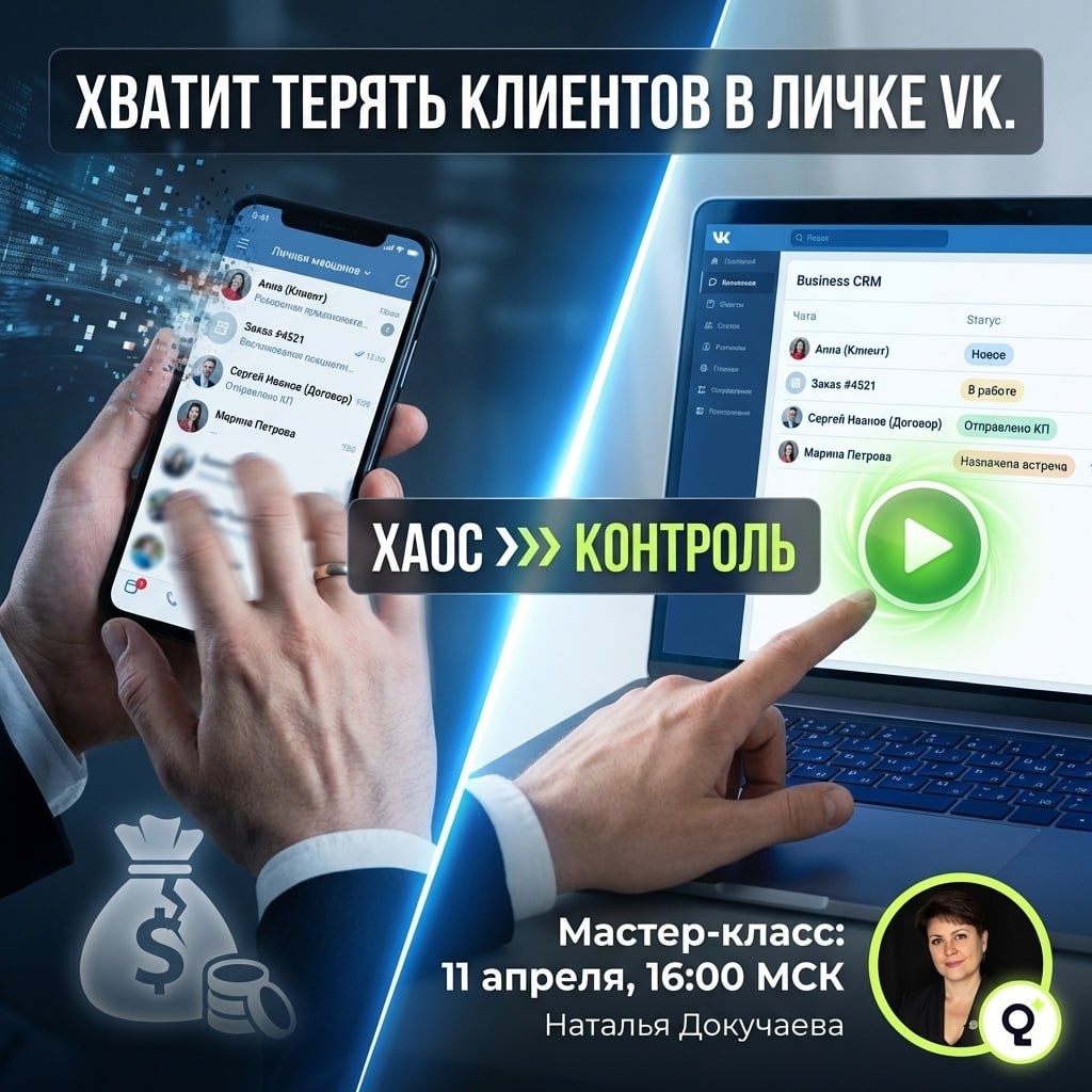Знакомо: клиент написал в сообщения группы или вам лично, а уведомнение потерялось в ленте. Или агент не успел ответить, потому что был не в соцсети. Продажа упущена. Теперь это в прошлом. Мы интегрировали ВКонтакте в Океу. Вся переписка из личных сообщений (и группы, и страницы) теперь приходит в систему. Ваши агенты видят новые диалоги и отвечают на них, не открывая ВК. 11 апреля в 16:00 МСК на практическом мастер-классе я, Наталья Докучаева, покажу не «функцию», а готовое решение: ✅ Как в 3 клика подключить ВК и собрать все диалоги в одну панель. ✅ Как ваши агенты будут мгновенно видеть новые сообщения и отвечать прямо из Океу — с любого устройства. ✅ Как больше никогда не пропустить ни одного клиента из ВК, потому что все заявки будут как на ладони. Это для вас, если: • Вы теряете заявки из ВК, • Ваши агенты постоянно переключаются между браузером и соцсетями, • Вы хотите контролировать качество общения с клиентами в одном месте. 📅 11 апреля (суббота), 16:00 МСК 📍 Ссыл