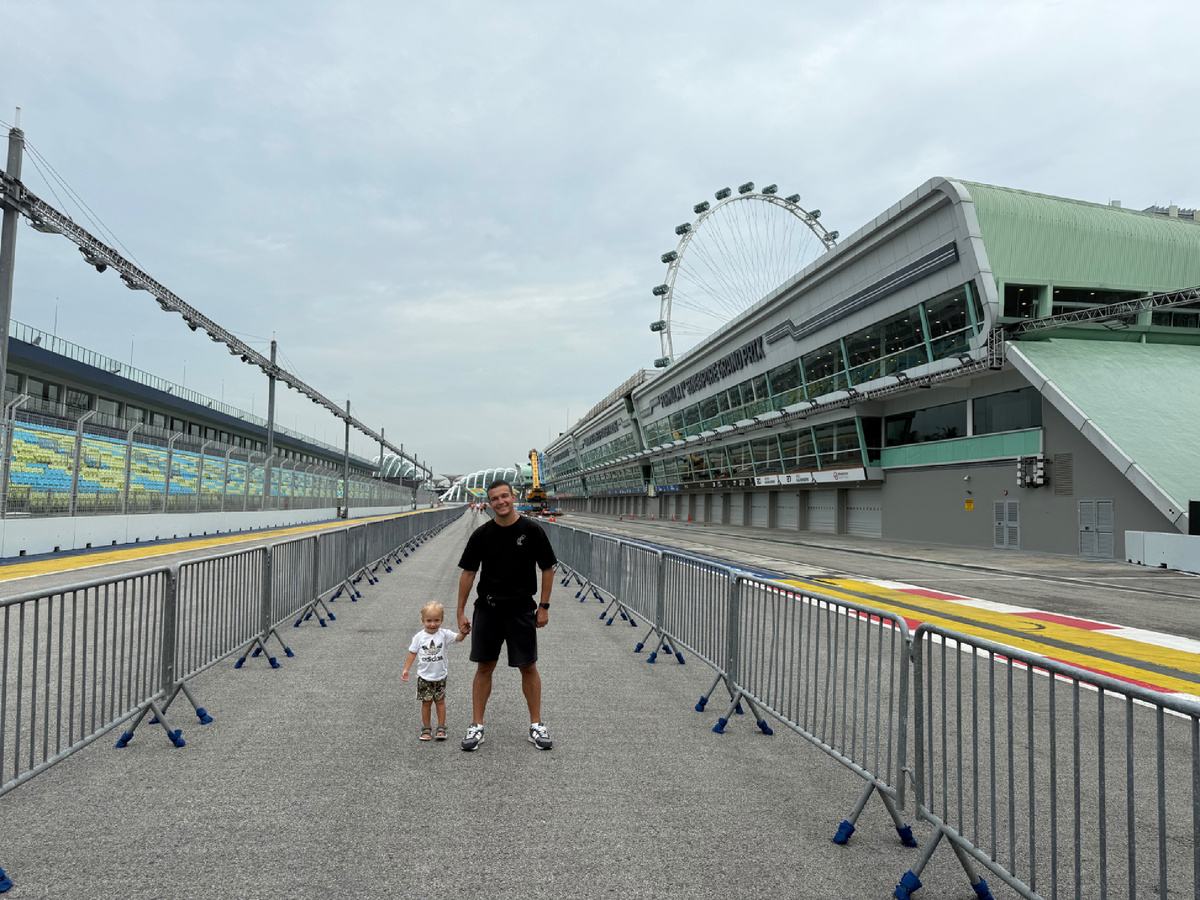 Marina Bay Street Circuit — одна из самых необычных трасс в календаре Формулы-1. Она появилась в 2008 году и сразу вошла в историю как первая ночная гонка F1: болиды мчатся по освещённым улицам города среди небоскрёбов и набережной Марина-Бэн. Эта трасса не автодром с закрытой территорией, а временная трасса, проложенная по обычным городским дорогам. А значит — вне гоночного уикенда здесь можно гулять совершенно бесплатно. О нашем опыте прогулки расскажу в сегодняшней статье! Дополнительной мотивацией для прогулки станет, что трасса находится в самом центре города. При наличии транспортной карты можно сэкономить силы и доехать до колеса обозрения на автобусе. Колесо обозрения будет главным ориентиром к паддоку трассы. Координаты: 1.291389, 103.863889